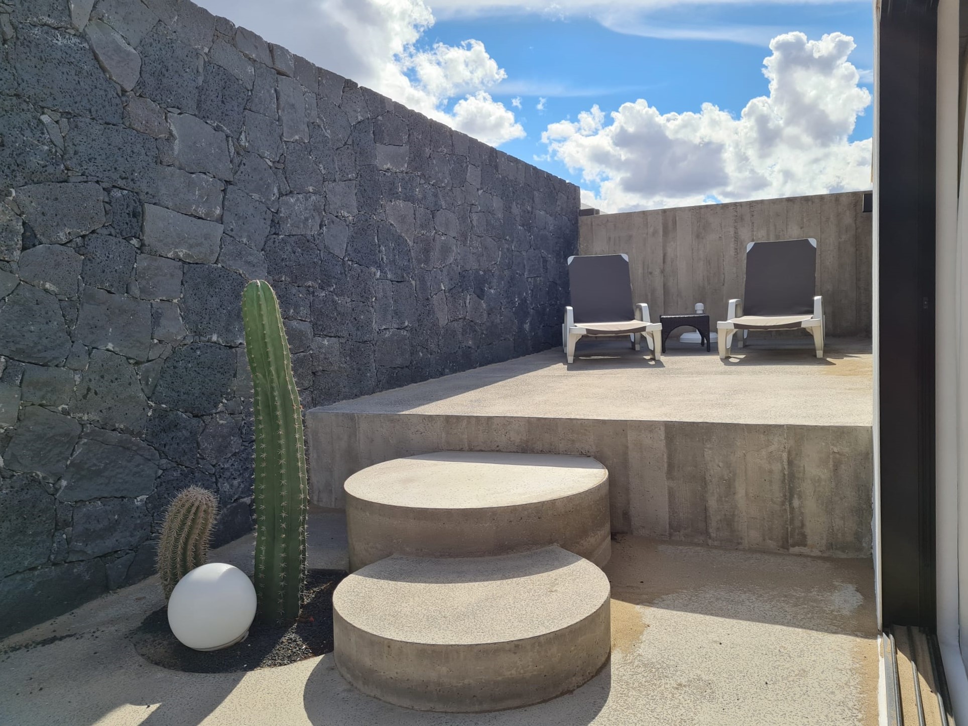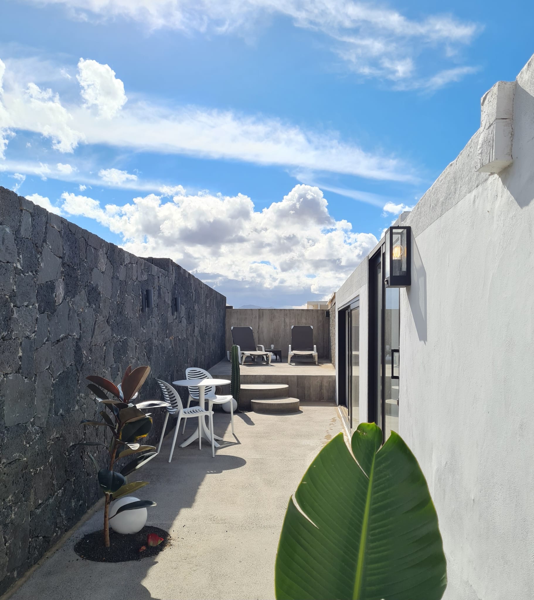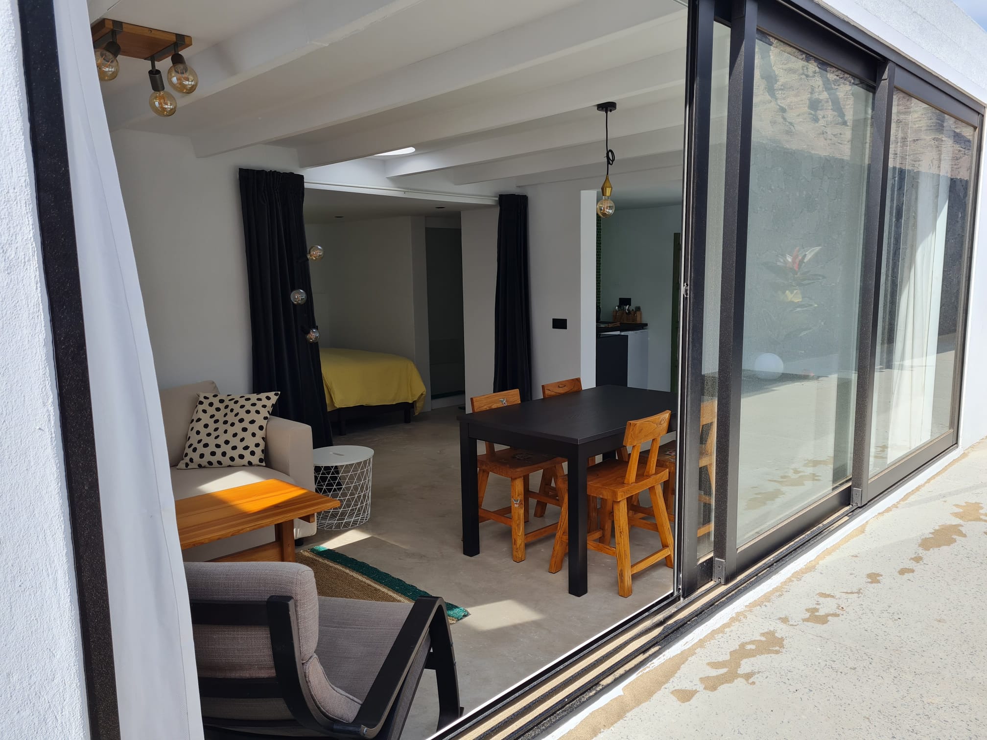 This totally renovated ground floor charming apartment is suitable for 2 to 3 persons (a comfortable sofa-bed) It consists of a large open living and sleeping space (35m²), which is equipped with a double bed, a walk-in closet and a bathroom with shower, sink and an individual WC. The fully equipped kitchen is separate. The terrace with breath-taking view on El Risco with amazing sunrise is an oasis of sun and fresh air.