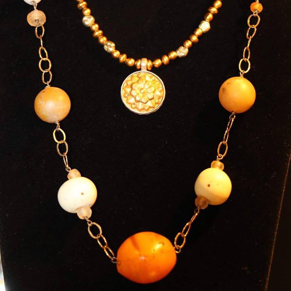 Sieraden en creaties gemaakt met etnische parels, halfedelstenen, breloques en Muraans glas.